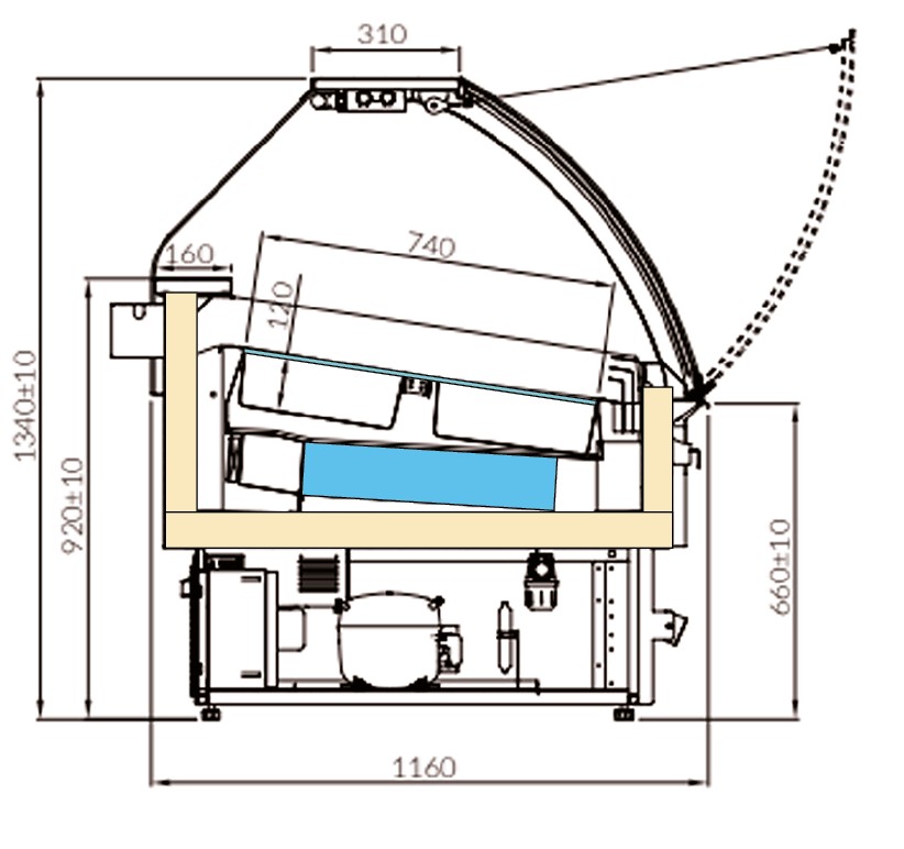 | Optional Extras | Automatic scoop wash with water flow £412 Napoli pans 5ltr (each) £50 Scoop wash container £114 Electronic temp, recorder, software & wire £170 Additional LED light on front base panel (per meter) £120 |