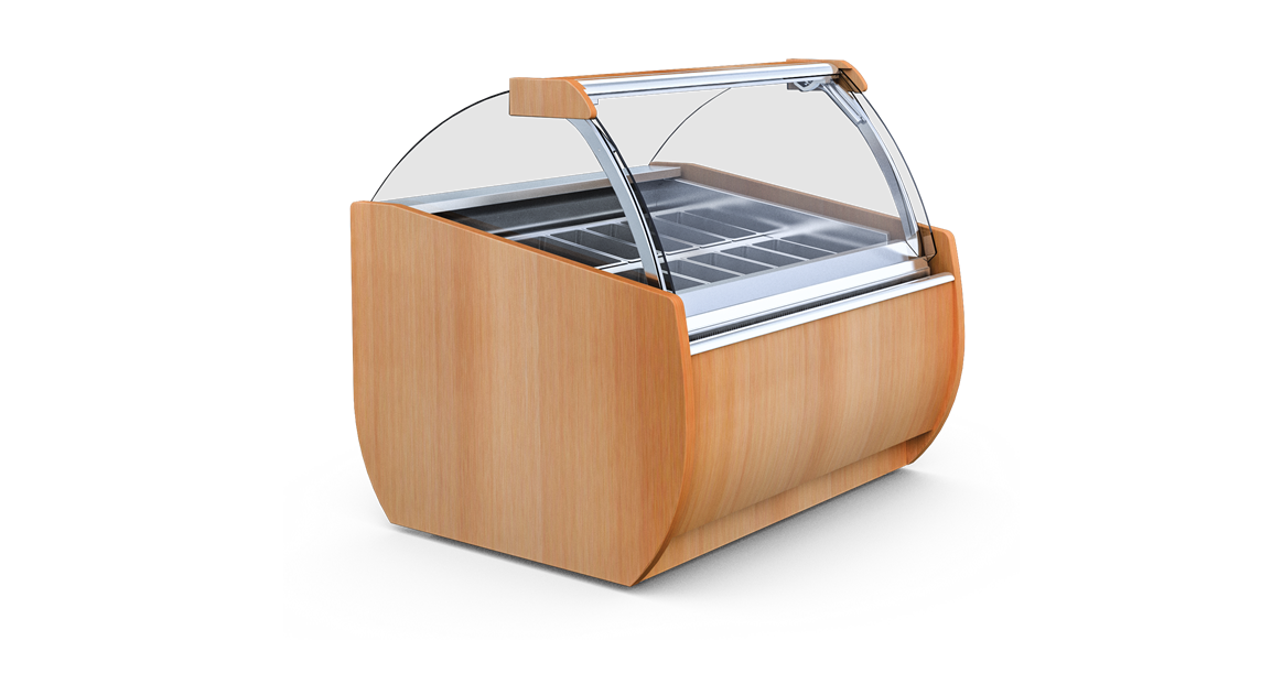 • Display area is made of stainless steel prepared for the Napoli pans (360mm x 165mm)