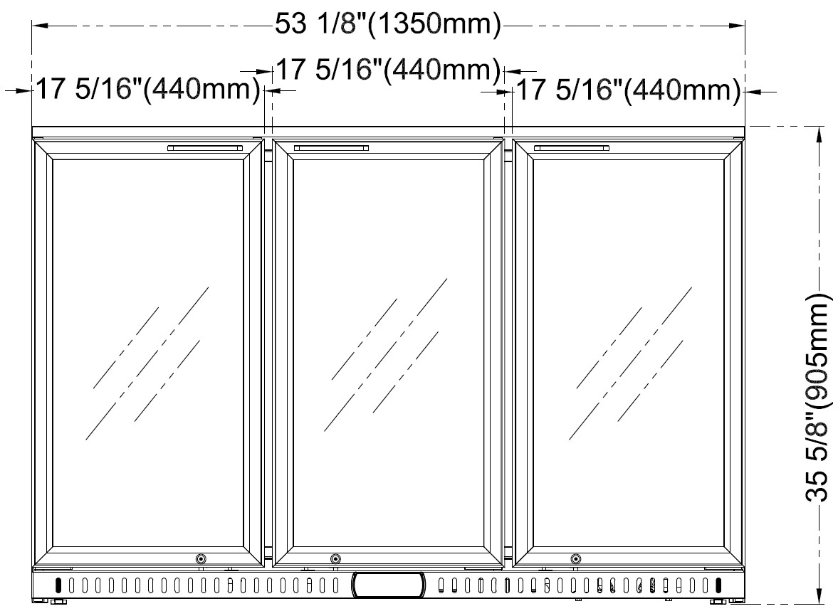 • Sliding front glass doors (BBC-60H, BBC-90H, BBC-133H have hinged front doors)