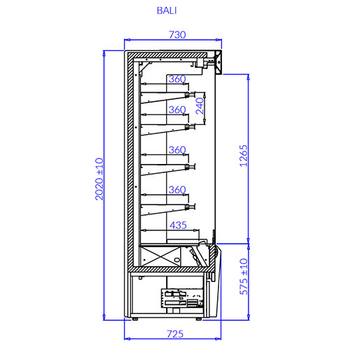 | Optional Extras | Insulated side panels made of stainless steel £335 Meat hooks £134 Automatic defrost (electric heaters) £150 Full top panel made of stainless steel £73 Wooden top panel (per meter) £134 Different colour front panel (per meter) £50 Stainless steel front panels £170 Base made of stainless steel (per meter) £40 Fixed partition made of PETG £219 Goods securing fence (per meter) £25 Additional illuminated shelf (per meter) £134 Interior and exposition shelves made of stainless steel (per meter) £440 |