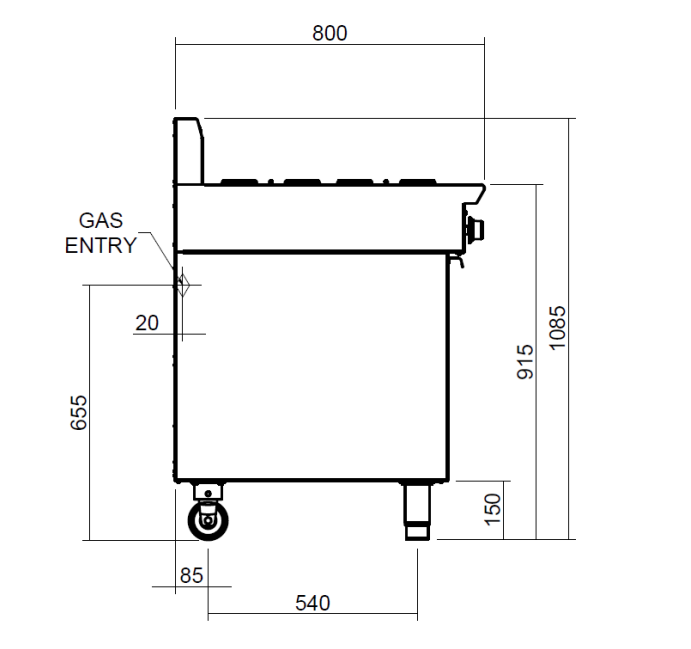 - 4 x 5.0kW (75,790 Btu/hr) open burners