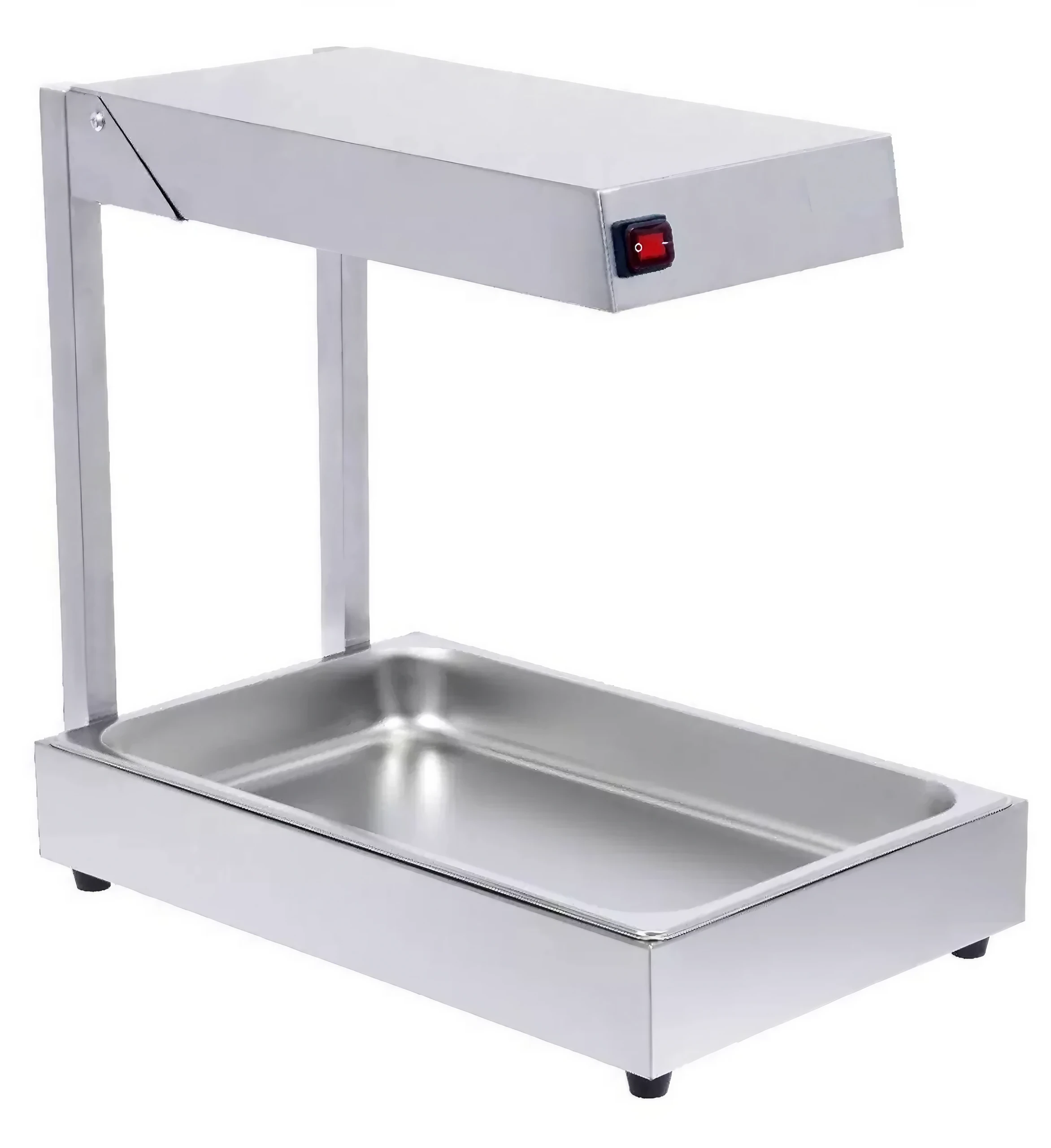 • Overhead infrared heating element shining over a food pan to keep hot food warm