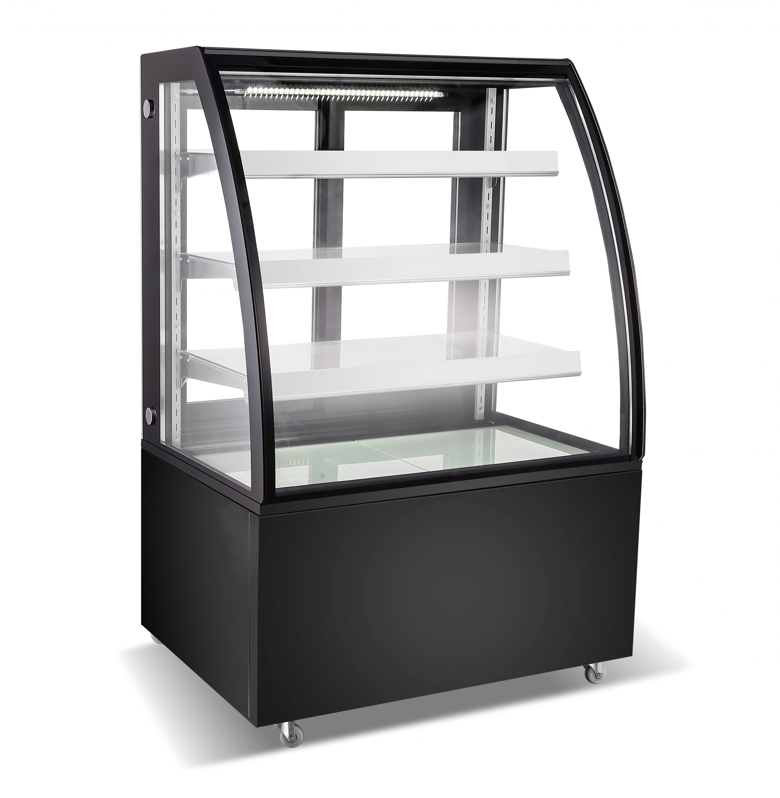 • White LED lighting on top and under each shelf