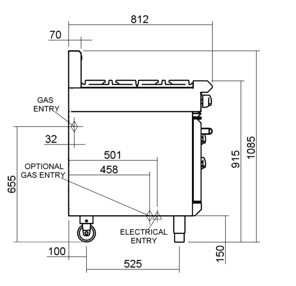 - Removable heavy-duty cast iron burners and vitreous enamel pot stands