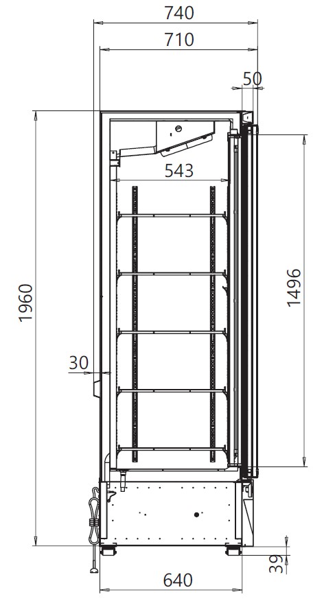 • 5 rows of adjustable wire shelves