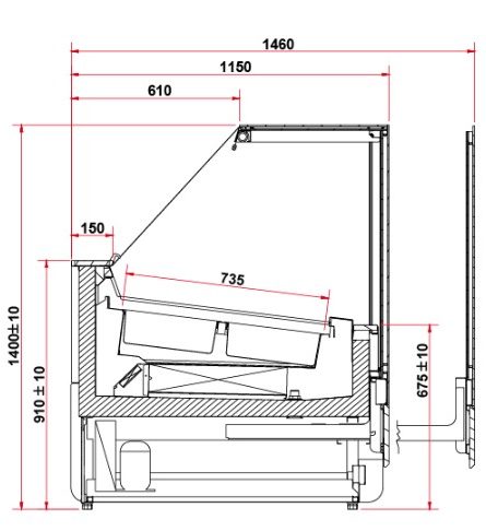 | Optional Extras | Additional LED light on front base panel (per meter) £120 Colour option (per meter) £130 Napoli pan 360mm x 250mm £65 Napoli pan 360mm x 165mm £54 Scoop wash container with water flow system £412 Castors (per meter) £250 |