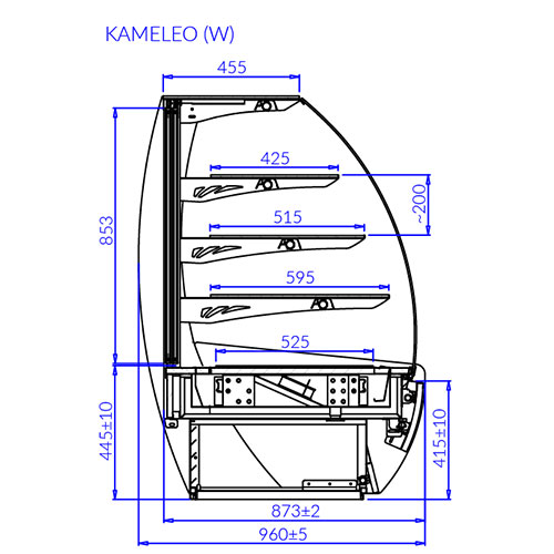 • Height and angle adjustable sloping shelves