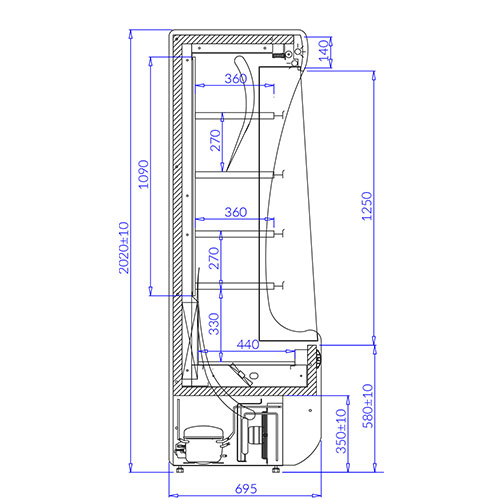 | Optional Extras | Goods securing fence (only with full shelves) £25 Stainless steel shelves and interior £385 Meat hooks £134 |