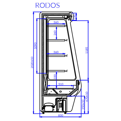 | Optional Extras | Meat hooks £134 Auto condensate evap. (electric evaporator) £320 Goods securing fence (only with full shelves) £25 Stainless steel shelves and interior £300 |